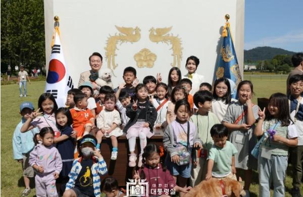 한편, 이날 정원을 방문한 아이들은 잔디마당에 마련된 대통령 집무실 모형의 포토존에 많은 관심을 보이며 기념사진을 찍었다. 대통령 부부는 직접 포토존을 방문해 아이들과 다함께 기념 촬영을 하며 평생 잊지 못할 추억을 선물했다.