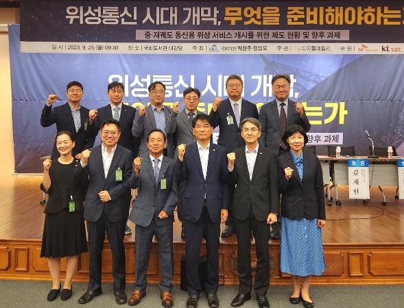[중앙뉴스라인, 우제헌기자] 우리나라의 위성통신 선진국 대열 진입을 위해 국회와 정부 그리고 산업계가 한 데 모였다 . 오늘 오전 국회도서관 대강당에서 과학기술정보방송통신위원회 소속 박완주 위원 ( 천안을 ·3 선 ) 이국회도서관 대강당에서 디지털데일리와 공동주관으로 ' 위성통신 시대 개막 , 무엇을 준비해야하는가 ? ' 대토론회가 개최됐다 .