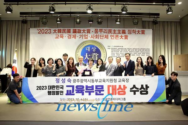 정성숙 광주동부교육청 교육장은 한국언론미디어그룹이 주최하는 ‘2023 대한민국 의정대상 시상식의 교육행정 부문에서 ‘대상’을 수상했다.