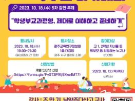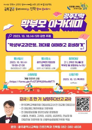 ‘광주진학 학부모 아카데미’는 12월에 ‘학생부종합전형을 위한 과목 선택과 대학의 평가’라는 주제로 올해 특강을 마무리한다.