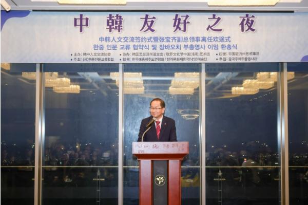 [중앙뉴스라인, 신기철기자] 강병삼 제주시장은 9일 캠퍼트리호텔 연회장에서 열린 한중 우호의 밤 행사에 참석해 소통과 만남의 자리를 마련해 준 한중인문교류협회 관계자들에게 감사 인사를 전했다.