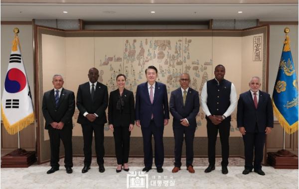 [중앙뉴스라인, 우제헌기자] 윤석열 대통령은 10월 10일 오후 제13차 한-카리브 고위급 포럼에 참석하기 위해 방한한 카리브 6개국 장관급 인사들을 접견했다.