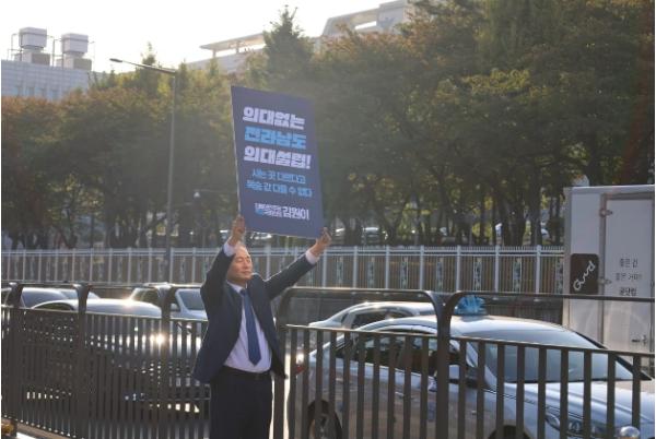 [중앙뉴스라인, 우제헌기자] 더불어민주당 김원이 의원(목포시, 보건복지위)이 16일(월) 오전, 서울 용산 대통령실 앞에서 전남권 의대신설, 목포의대 유치를 촉구하는 1인 호소를 했다.