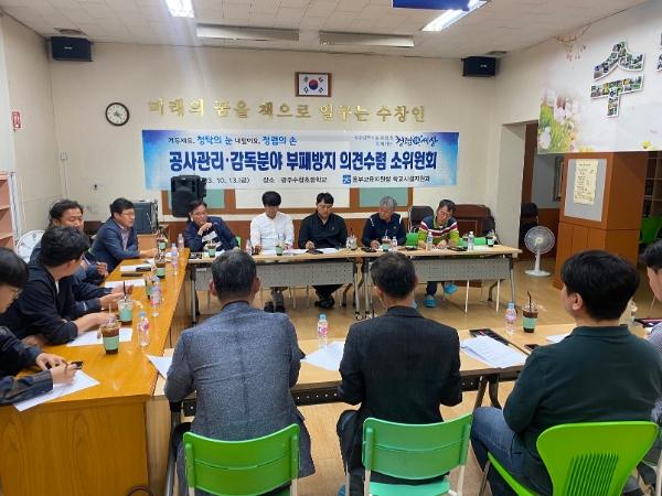 [중앙뉴스라인, 김병연기자] 광주동부교육지원청이 지난 13일 광주수창초 공사 현장에서 공사관계자들과 함께 공사 관리·감독 분야 부패방지 의견 수렴을 위한 소위원회를 개최했다.