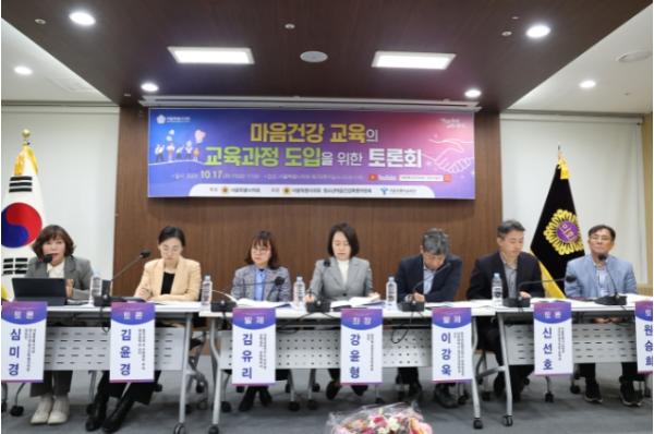 [중앙뉴스라인, 이승훈기자] 서울특별시의회 청소년 마음건강 특별위원회(위원장 심미경 의원)는 10월 17일 서울특별시의회 제2대회의실에서 서울특별시교육청과 함께 ‘마음건강 교육의 교육과정 도입을 위한 토론회’를 개최했다.