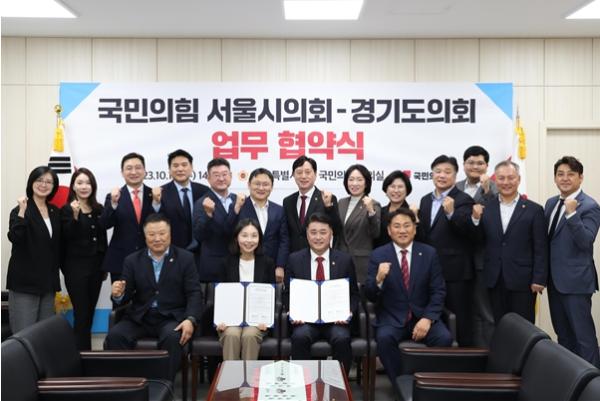 [중앙뉴스라인, 이승훈기자] 오늘 서울시의회 국민의힘(대표의원 최호정)과 경기도의회 국민의힘(대표의원 김정호)은 광역의회 교섭단체 운영의 교류·협력 활성화를 위한 업무협약을 체결했다.