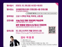 [중앙뉴스라인, 김병연기자] 광주시교육청이 오는 28일 14시 김대중컨벤션센터 컨벤션홀에서 ‘EBS 대표강사 초청 고1·2학년 학생 및 학부모 대상 입시설명회’를 개최한다.