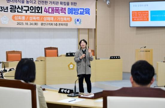 [중앙뉴스라인, 김병연기자] 광산구의회가 24일 의원 및 사무국 직원을 대상으로 ‘4대 폭력 예방 교육’을 진행했다.