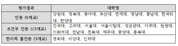그러나 제3주기 법학전문대학원 평가에 따라 조건부 인증을 받은 학교에 대한 추가평가는 규정대로 이루어지지 않고 있는 것으로 드러났다. 교육부에 따르면, 이번 평가를 통해 조건부 인증을 받은 13개 학교 중 2023년에 추가평가를 진행하는 학교는 3개교(아주대, 이화여대, 중앙대)에 불과했다.