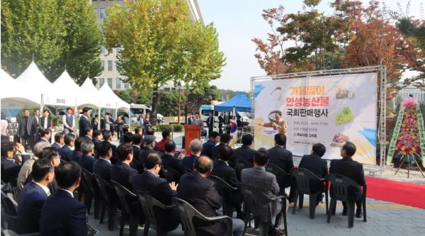 김학용 의원(국민의힘, 경기 안성시)은 지난 24일 국회 소통관 앞마당에서 ‘가을맞이 안성농산물 국회판매행사’를 개최했다.