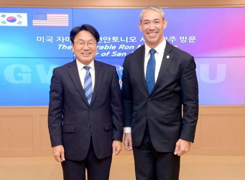 [중앙뉴스라인, 신기철기자] 강기정 광주광역시장은 26일 시청 비즈니스룸에서 자매도시인 미국 샌안토니오시 론 니렌버그 시장을 만나 경제·문화 협력 강화방안을 논의했다.