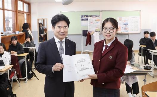 수험생 격려 방문 현장에서 교육감 자필 응원메시지 담아 전달