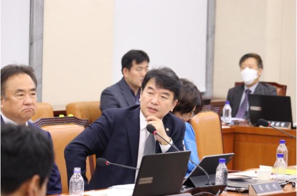문진석 의원은 이어서 재해위험개선지구 사업에 대해 질의했다. 갈수록 재해의 발생빈도와 강도가 심해지는 상황에서 효과적인 재해 예방을 위해서는 사업이 신속히 추진될 필요가 있음에도 정비사업의 진척 속도가 지지부진한 점에 대해 지적했다. 그러면서 문진석 의원은“결국 사업비 확보가 가장 큰 문제라며 2013년도까지 해당 사업의 국비 보조율이 60%였다가, 박근혜 정부시기인 14년부터 50%로 바뀌었다”며 “자연재해에 대한 피해가 점점 더 극심해지는 상황을 고려하여 국비보조율을 상향 조절할 필요가 있다”라고 말했다.