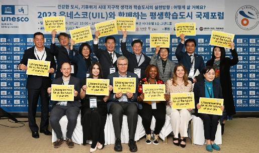 또 이 자리에는 라울 발데스 코테라 UIL 부소장과 디디엘 주르당 유네스코 글로벌 보건교육의장 등 독일, 프랑스, 콜롬비아, 케냐 평생학습도시 관계자를 비롯해 광주 서구, 서울 은평구, 광명시, 안성시, 공주시, 부안군, 정읍시 등 국내 평생학습 대표도시 관계자들이 참석해 각 도시의 정책과 경험을 공유했다.