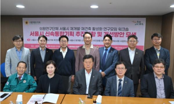 [중앙뉴스라인, 이승훈기자] 서울특별시의회 의원연구단체 ‘서울시 재개발·재건축 활성화 연구모임’이 10월 26일(목) '서울시 신속통합기획 추진현황 및 개선방안 모색' 워크숍을 개최했다.