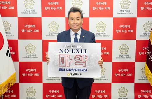 [중앙뉴스라인, 이승훈기자] 강남구의회 김형대 의장은 31일 마약 범죄에 대한 경각심을 높이고 안전한 사회를 만들기 위한 마약근절‘NO EXIT’ 릴레이 캠페인에 동참했다.