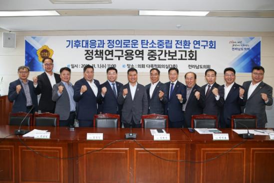 [중앙뉴스라인, 차행운기자] 전남도의회 의원 연구단체 ‘기후대응과 정의로운 탄소중립 전환 연구회’는 11월 1일 전남도의회 다목적회의실에서 ‘탄소중립 전환에 따른 일자리 감소 대응 방안 수립을 위한 정책 연구’에 대한 정책연구용역 간담회를 개최했다.