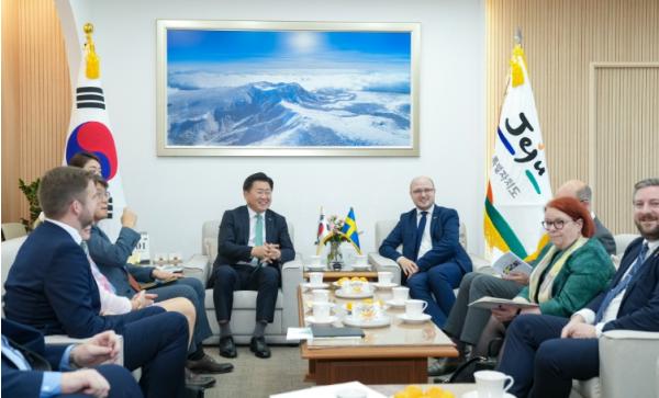 이날 면담에서 오영훈 지사와 스웨덴 방문단은 제주특별자치도 출범 성과 및 애로사항 등에 대한 정보를 공유하고 다양한 분야의 정책 및 사업 교류 협력방안에 대해 논의했다.
