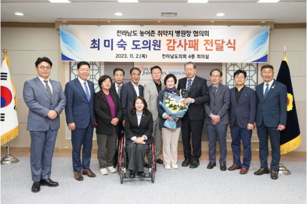 최미숙 전라남도의원, 농어촌취약지병원장협의회 ‘감사패’ 수상