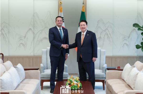 [중앙뉴스라인, 우제헌기자] 윤석열 대통령은 11월 3일 오후 용산 대통령실에서'레오 바라드카(Leo Varadkar)'아일랜드 총리와 정상회담을 갖고, 양국관계, 분야별 실질협력 강화 방안, 지역 및 국제정세 등에 대해 의견을 교환했다.