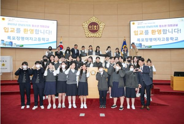 전라남도의회 조옥현 교육위원장, 청소년 의회교실 참여 목포정명여고 학생들 격려