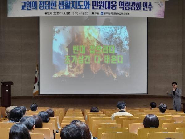 [중앙뉴스라인, 김병연기자] 광주서부교육지원청이 지난 6일 관내 교원을 대상으로 ‘정당한 생활지도 이해와 민원 대응 역량 강화’ 특강을 실시했다.