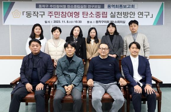 [중앙뉴스라인, 이승훈기자] 동작구의회 의원 연구단체 ‘동작구 주민참여형 탄소중립실천 연구모임’은 8일 구의회 제1소회의실에서 주민참여형 탄소중립 실천방안 연구 용역 최종보고회를 개최했다.