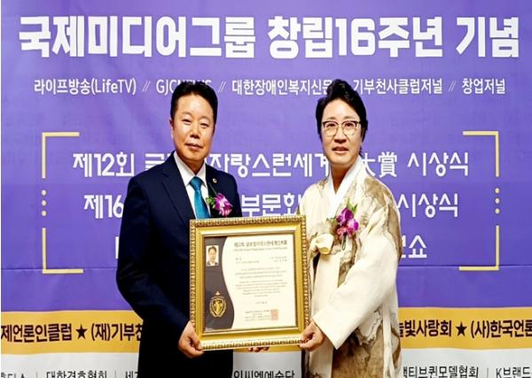 [중앙뉴스라인, 차행운기자] 전라남도의회 임지락 의원(더불어민주당, 화순1)은 11월 11일 국제언론인클럽(GJC), 대한장애인복지신문, (재)기부천사클럽이 공동 주관하는 ‘글로벌자랑스런세계인大賞’에서 ‘지역꿈나무발전공헌부문’ 수상자로 선정되는 영예를 안았다.