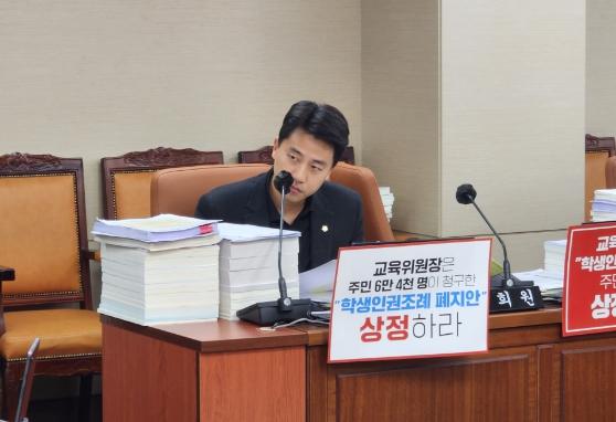 이어진 질의에서 이 의원은 장기적으로 청소년 범죄나 도박, 마약문제와 같이 심각성을 많이 가지고 있는 사안의 경우를 해결하기 위해서는 계도수준의 대응 보다는 강력한 처분을 통해 학생들이 잘못된 부분을 명확하게 인식할 수 있도록 해야 한다는 주장을 함께 했다. 갈수록 고도화되고 치밀해지는 청소년 범죄의 수준에 대응하기에는 서울시교육청의 방침은 본질적으로 해결하기 어렵다라는 것이다.