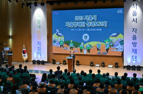 서울시 자율방재단 성과보고회에는 오세훈 서울시장, 송도호 서울시의회 도시안전건설위원장 및 도시안전건설위원, 자율방재단 등 500여 명이 참석했다.