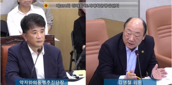 [중앙뉴스라인, 이승훈기자] 서울시의회 도시계획균형위원회 김영철 의원(국민의힘, 강동5)은 11월 2일 열린 제321회 정례회 도시계획균형위원회 소관 약자와의동행 추진단 행정사무감사에서, 이번 10월에 개발된 “약자와의 동행지수” 내 세부지표별 정의가 모호한 부분들을 지적하고, 지표의 실효화를 위해 지속적으로 보완해 줄 것을 촉구했다.