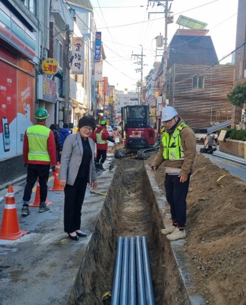 강북구의회 유인애부의장, 수유사거리~광산사거리까지 지중화사업 중 통신관로 매설 작업 현장 참관