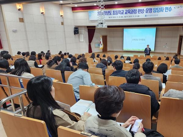 [중앙뉴스라인, 김병연기자] 광주시교육청이 지난 20일부터 21일까지 이틀에 걸쳐 광주교육연수원 중강당에서 초등 교육과정 편성을 담당하는 교사를 대상으로 ‘2024학년도 초등학교 교육과정 편성·운영 담당자 연수’를 개최했다.