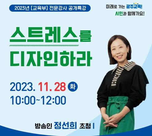 [중앙뉴스라인, 김병연기자] 광주교육시민협치진흥원설립추진단이 오는 28일 방송인 정선희를 초청해 광주교육연수원 대강당에서 학부모·시민 대상 공개특강을 실시한다.