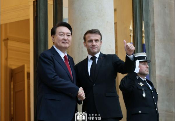 [중앙뉴스라인, 우제헌기자] 2030 부산세계박람회 유치 교섭을 위해 프랑스를 방문 중인 윤석열 대통령은 오늘 (현지시간 11. 24, 금) 엘리제궁에서 에마뉘엘 마크롱(Emmanuel Macron) 프랑스 대통령과 단독 정상회담을 갖고, 양국 간 미래산업 분야 실질 협력 강화 방안과 함께 한반도 정세, 중동 정세 등을 포함한 지역 정세 및 글로벌 현안에 대해 의견을 교환했다.