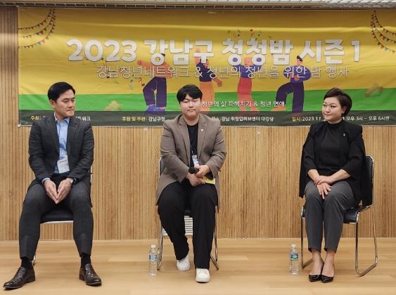 [중앙뉴스라인, 이승훈기자] 강남구의회 행정재경위원회 김현정 의원(압구정ㆍ청담)과 우종혁 의원(삼성1ㆍ삼성2ㆍ대치2)이 ‘2023 강남구 청년의 밤’토크콘서트에 참석했다.