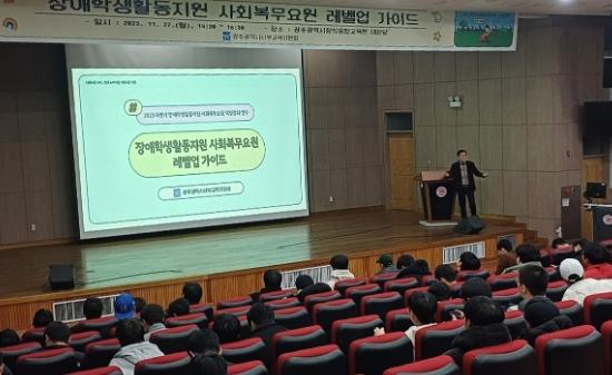 [중앙뉴스라인, 김병연기자] 광주서부교육지원청이 지난 27일 광주창의융합교육원 대강당에서 2023학년도 하반기 장애학생활동지원 사회복무요원 역량강화 연수를 실시했다.