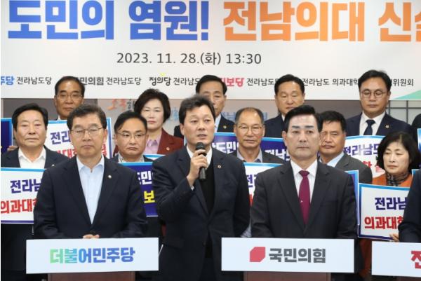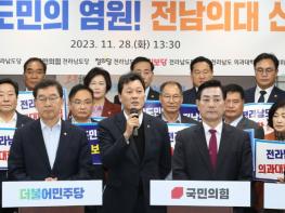 한편, 이날 기자회견에는 더불어민주당 신정훈, 국민의힘 김화진, 정의당 박명기, 진보당 이성수 위원장과 전라남도의회 의과대학 유치 대책위원회 최선국·신민호 공동위원장을 비롯해 대책위 소속 의원들이 함께했다.