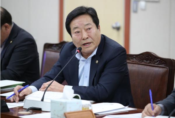 사진설명 : 정길수 도의원이 지난 27일 농수산위원회에서 열린 2024년 농축산식품국 예산안 심사에서 현안 질의를 하고 있다.