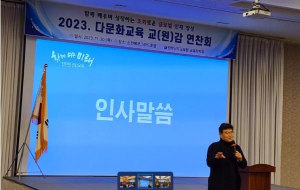 [중앙뉴스라인, 차행운기자] 전라남도교육청이 11월 30일, 12월 1일 이틀 동안 동부(순천), 서부(영암) 권역 별로 2023. 다문화교육 교(원)감 연찬회를 열었다.