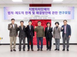 이번 연구단체는 지방의회의 지방자치단체 감시·견제 기능 수행의 법적 문제점 및 의정활동 한계점에 대한 해결방안을 모색하고, 지방자치법과 공직자윤리법 개정 방안 등을 마련하여 지방의원의 의정활동을 활성화하고, 지방자치제의 발전을 도모하고자 결성됐다.