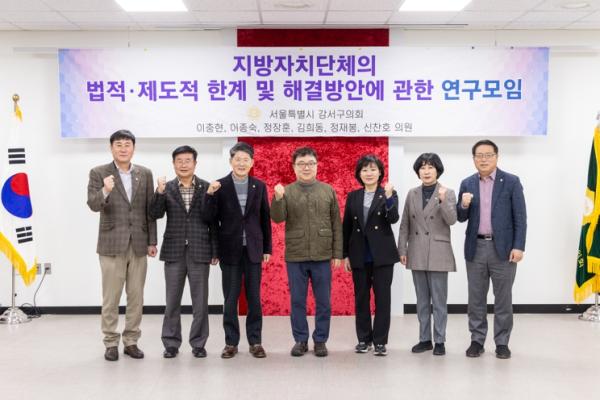 [중앙뉴스라인, 이승훈기자] 서울 강서구의회 의원 연구단체인 ‘지방자치단체의 법적·제도적 한계 및 해결방안에 관한 연구모임’(공동대표 이충현, 정재봉)은 지난 30일 1층 다목적실에서 연구용역 최종보고회를 개최했다.