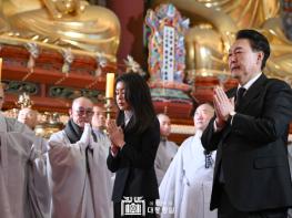 [중앙뉴스라인, 우제헌기자] 윤석열 대통령 부부는 12월 2일 오후에 서울 종로구 조계사에 마련된 대한불교 조계종 전 총무원장 자승스님의 분향소를 찾아 조문했다.