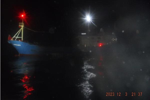 12월 4일에 나포한 어선은 허가받은 조업수역을 이탈한 혐의를 받고 있다. 우리 수역에서 어업활동을 하는 중국어선은 허가된 조업구역에 어구를 설치하고 조업을 마칠 때까지 그 수역을 벗어나면 안 되는데, 이 어선은 어구를 설치해 놓고 우리 수역 바깥쪽으로 이탈했다.