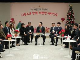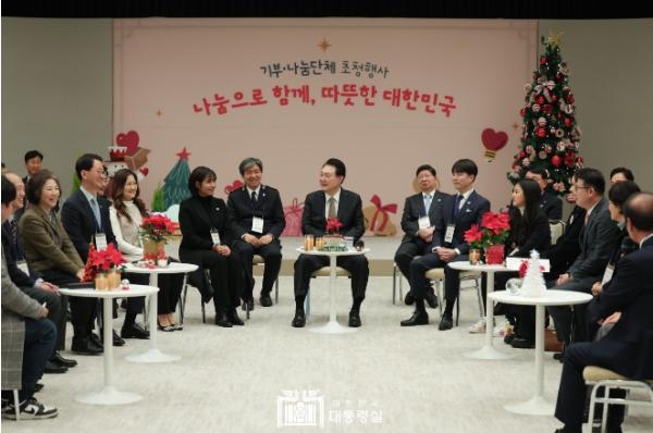 [중앙뉴스라인, 우제헌기자] 윤석열 대통령은 12월 4일 오후 대통령실에서 14개 기부·나눔단체 관계자 및 기부자 등을 초청해 각 단체에 성금을 기부하고 간담회를 가졌다. 오늘 행사는 대통령이 직접 나눔 실천 및 확산에 참여하고 있는 참석자들에게 감사를 표하고, 사회적 약자에 대한 관심과 배려를 독려하기 위해 마련됐다.