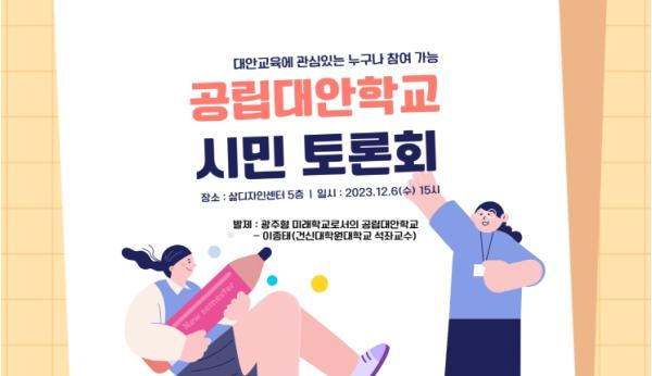 [중앙뉴스라인, 김병연기자] 광주교육시민협치진흥원설립추진단이 오는 6일 오후 3시 광주형 공립대안학교 설립에 대한 의견 수렴을 위한 토론회를 개최한다.