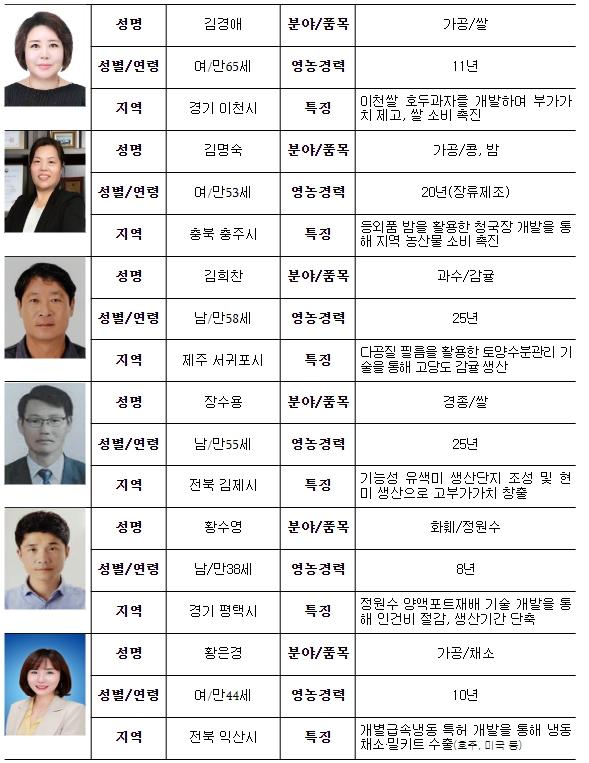 [중앙뉴스라인, 우제헌기자] 농림축산식품부는 농업·농촌의 변화와 혁신을 주도하는 ‘신지식농업인’ 6명을 선정·발표했다.