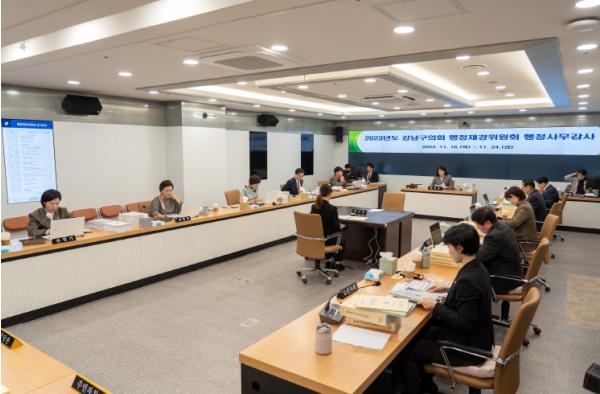[중앙뉴스라인, 이승훈기자] 강남구의회 행정재경위원회는 제315회 제2차 정례회를 맞아 지난 16일부터 24일까지 총 9일간 정책홍보실, 감사담당관, 행정국, 기획경제국, 미래문화국, 보건소, 도시관리공단 소관 24개 부서 및 13개 동주민센터 행정사무감사를 실시했다.