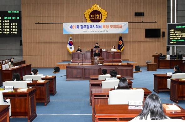 한편, 광주광역시의회는 2005년부터 광주광역시교육청에서 대상 학교를 추천받아 학생 모의의회를 진행 중에 있고, 지금까지 총 81회 8,200여 명이 체험했으며, 연말에는 모의의회 참가 학생들의 우수 체험수기에 대한 시상도 할 계획이다.