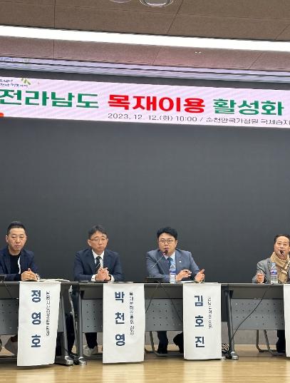 [중앙뉴스라인, 차행운기자] 전라남도의회 김호진 의원(더불어민주당·나주1)은 12월 12일 순천만 국제습지센터 컨퍼런스홀에서 개최된 ‘목재이용 활성화 방안 마련 토론회’에 토론자로 참석했다.